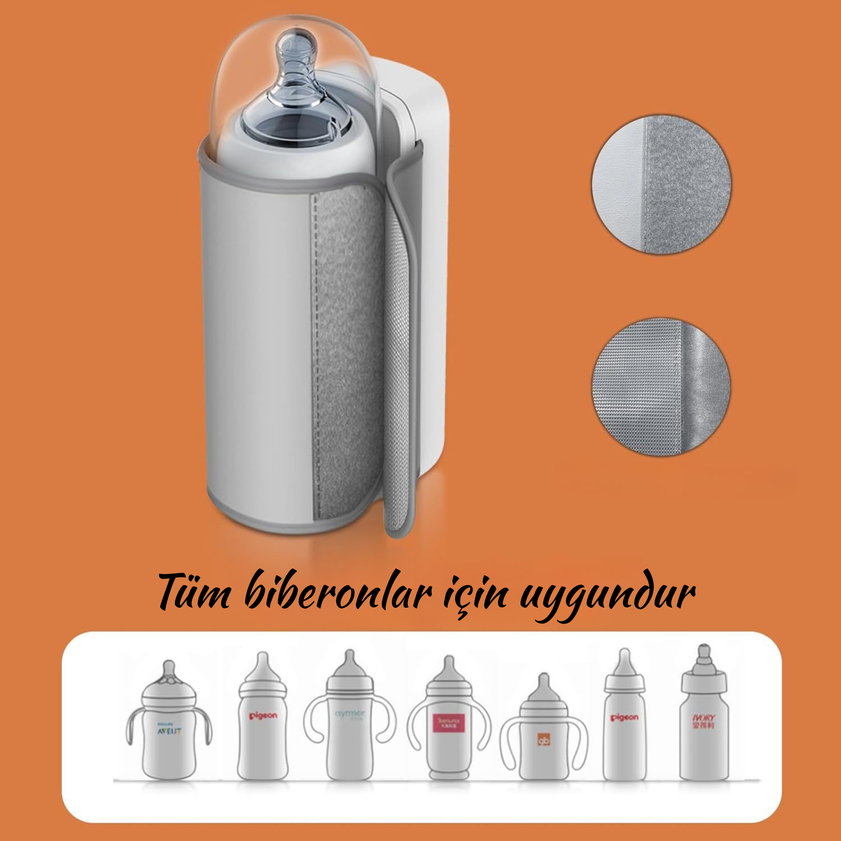 Geniş iç yapısı sayesinde her marka ve boyuttaki biberonla rahatça kullanılabilir. Ekstra aparat gerekmez.